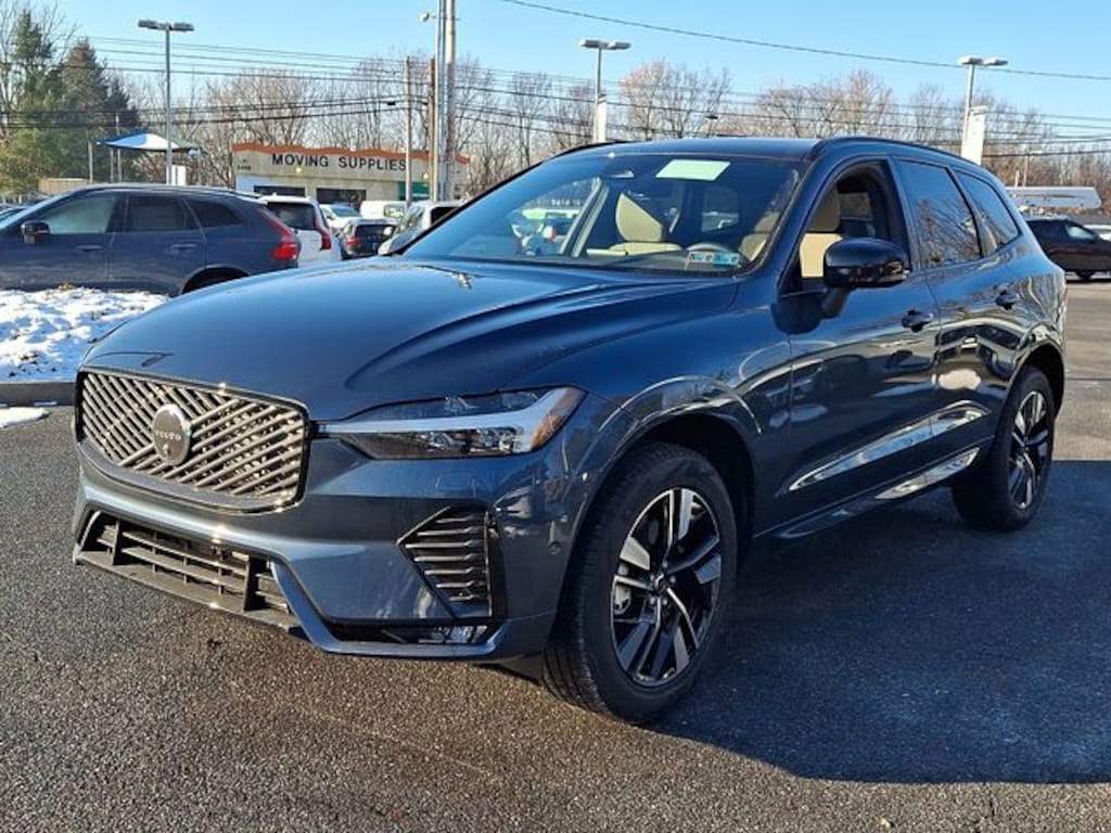 Recent Arrival! Denim Blue Metallic This XC60 B5 Plus is nicely equipped with Climate Package (Heated Rear Seats and Heated Steering Wheel), Protection Package Premier (All-Weather Floor Mats, Bumper Cover, Cargo Tray, First Aid Kit, and Wheel Locks), 10 Speakers, 4-Wheel Disc Brakes, ABS brakes, Air Conditioning, Alloy wheels, AM/FM radio: SiriusXM, Anti-whiplash front head restraints, Auto High-beam Headlights, Auto-dimming door mirrors, Auto-dimming Rear-View mirror, Automatic temperature control, Brake assist, Bumpers: body-color, Delay-off headlights, Driver door bin, Driver vanity mirror, Dual front impact airbags, Dual front side impact airbags, Electronic Stability Control, Emergency communication system: Volvo Cars App w/4 Year Subscription, Exterior Parking Camera Rear, Four wheel independent suspension, Front anti-roll bar, Front Bucket Seats, Front Center Armrest, Front dual zone A/C, Front reading lights, Fully automatic headlights, Garage door transmitter: HomeLink, Harman/Kardon Premium Sound, Heated door mirrors, Heated Front Bucket Seats, Heated front seats, Illuminated entry, Knee airbag, Leather Shift Knob, Low tire pressure warning, Memory seat, Nordico Upholstery, Occupant sensing airbag, Outside temperature display, Overhead airbag, Panic alarm, Passenger door bin, Passenger vanity mirror, Power door mirrors, Power driver seat, Power Liftgate, Power moonroof, Power passenger seat, Power steering, Power windows, Radio data system, Radio: High Performance Sound System, Rain sensing wipers, Rear anti-roll bar, Rear Camera Washer, Rear fog lights, Rear reading lights, Rear seat center armrest, Rear window defroster, Rear window wiper, Remote keyless entry, Security system, Speed control, Split folding rear seat, Spoiler, Steering wheel mounted audio controls, Tachometer, Telescoping steering wheel, Tilt steering wheel, Traction control, Trip computer, Turn signal indicator mirrors, and Variably intermittent wipers.