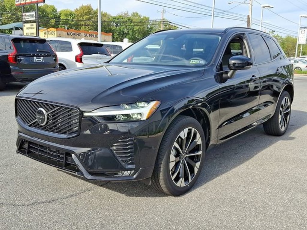 Onyx Black Metallic This XC60 B5 Plus is nicely equipped with Climate Package (Heated Rear Seats and Heated Steering Wheel), Protection Package Premier (All-Weather Floor Mats, Bumper Cover, Cargo Tray, First Aid Kit, and Wheel Locks), 10 Speakers, 4-Wheel Disc Brakes, ABS brakes, Air Conditioning, Alloy wheels, AM/FM radio: SiriusXM, Anti-whiplash front head restraints, Auto High-beam Headlights, Auto-dimming door mirrors, Auto-dimming Rear-View mirror, Automatic temperature control, Brake assist, Bumpers: body-color, Delay-off headlights, Driver door bin, Driver vanity mirror, Dual front impact airbags, Dual front side impact airbags, Electronic Stability Control, Emergency communication system: Volvo Cars App w/4 Year Subscription, Exterior Parking Camera Rear, Four wheel independent suspension, Front anti-roll bar, Front Bucket Seats, Front Center Armrest, Front dual zone A/C, Front reading lights, Fully automatic headlights, Garage door transmitter: HomeLink, Heated door mirrors, Heated Front Bucket Seats, Heated front seats, Illuminated entry, Knee airbag, Leather Shift Knob, Low tire pressure warning, Memory seat, Nordico Upholstery, Occupant sensing airbag, Outside temperature display, Overhead airbag, Panic alarm, Passenger door bin, Passenger vanity mirror, Power door mirrors, Power driver seat, Power Liftgate, Power moonroof, Power passenger seat, Power steering, Power windows, Radio data system, Radio: High Performance Sound System, Rain sensing wipers, Rear anti-roll bar, Rear fog lights, Rear reading lights, Rear seat center armrest, Rear window defroster, Rear window wiper, Remote keyless entry, Security system, Speed control, Split folding rear seat, Spoiler, Steering wheel mounted audio controls, Tachometer, Telescoping steering wheel, Tilt steering wheel, Traction control, Trip computer, Turn signal indicator mirrors, Variably intermittent wipers, and Wheels: 20" 5-Y Spoke Diamond Cut Alloy.