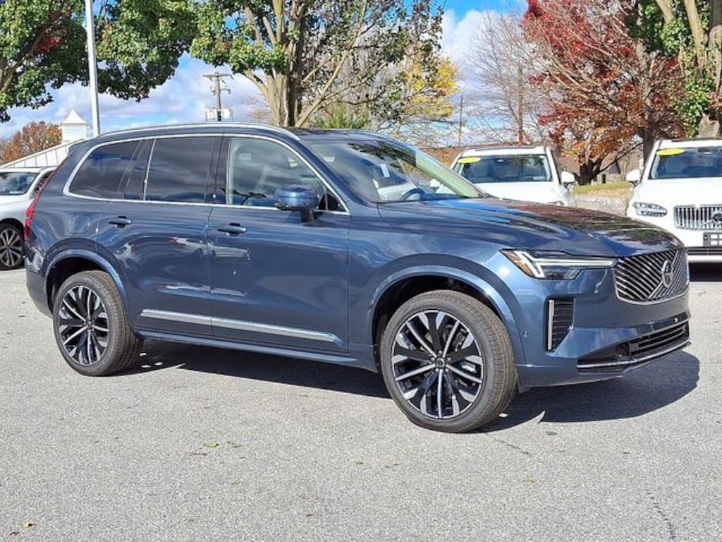 Recent Arrival! Denim Blue This XC90 B6 Plus 6-Seater is nicely equipped with 10 Speakers, 3rd row seats: bucket, 4-Wheel Disc Brakes, ABS brakes, Air Conditioning, Alloy wheels, AM/FM radio: SiriusXM, Anti-whiplash front head restraints, Apple CarPlay, Auto High-beam Headlights, Auto-dimming door mirrors, Auto-dimming Rear-View mirror, Automatic temperature control, Brake assist, Bumpers: body-color, Delay-off headlights, Driver door bin, Driver vanity mirror, Dual front impact airbags, Dual front side impact airbags, Electronic Stability Control, Emergency communication system: Volvo Cars App w/4 Year Subscription, Exterior Parking Camera Rear, Four wheel independent suspension, Front anti-roll bar, Front Bucket Seats, Front Center Armrest w/Storage, Front dual zone A/C, Front reading lights, Fully automatic headlights, Garage door transmitter: HomeLink, Genuine wood dashboard insert, Genuine wood door panel insert, Headlight cleaning, Heated door mirrors, Heated Front Bucket Seats, Heated front seats, Heated rear seats, Heated steering wheel, Illuminated entry, Knee airbag, Low tire pressure warning, Memory seat, Navigation System, Nordico Upholstery, Occupant sensing airbag, Outside temperature display, Overhead airbag, Panic alarm, Passenger door bin, Passenger vanity mirror, Power door mirrors, Power driver seat, Power Liftgate, Power moonroof, Power passenger seat, Power steering, Power windows, Radio data system, Radio: High Performance Audio System, Rain sensing wipers, Rear air conditioning, Rear anti-roll bar, Rear dual zone A/C, Rear fog lights, Rear reading lights, Rear window defroster, Rear window wiper, Remote keyless entry, Security system, Speed control, Speed-sensing steering, Split folding rear seat, Spoiler, Steering wheel mounted audio controls, Tachometer, Telescoping steering wheel, Traction control, Trip computer, Turn signal indicator mirrors, Variably intermittent wipers, and Wheels: 21" 5-Multi Spoke Black Diamond Cut Alloy.