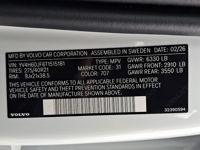 2026 Volvo XC90 plug-in hybrid T8 Ultra 6-Seater eAWD YV4H60JF6T1515181