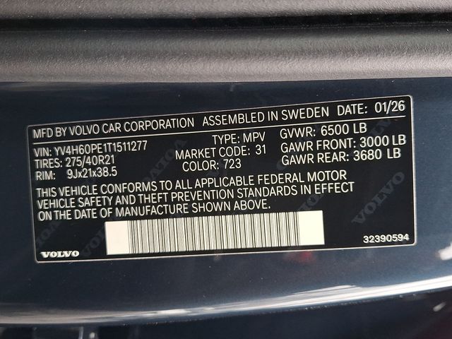 Denim Blue Metallic This XC90 Plug-In Hybrid T8 Plus is nicely equipped with Protection Package Premier (All-Weather Floor Mats, Bumper Cover, Cargo Tray, First Aid Kit, and Wheel Locks), 10 Speakers, 3rd row seats: bucket, 4-Wheel Disc Brakes, ABS brakes, Air Conditioning, Alloy wheels, AM/FM radio: SiriusXM, Anti-whiplash front head restraints, Apple CarPlay, Auto High-beam Headlights, Auto-dimming door mirrors, Auto-dimming Rear-View mirror, Automatic temperature control, Brake assist, Bumpers: body-color, Delay-off headlights, Driver door bin, Driver vanity mirror, Dual front impact airbags, Dual front side impact airbags, Electronic Stability Control, Emergency communication system: Volvo Car Connect Plus (4-Year Subscription), Exterior Parking Camera Rear, Four wheel independent suspension, Front anti-roll bar, Front Bucket Seats, Front Center Armrest w/Storage, Front dual zone A/C, Front reading lights, Fully automatic headlights, Garage door transmitter: HomeLink, Genuine wood dashboard insert, Genuine wood door panel insert, Harman/Kardon Premium Sound, Headlight cleaning, Heated door mirrors, Heated Front Bucket Seats, Heated front seats, Heated rear seats, Heated steering wheel, Illuminated entry, Integrated rear child seats, Knee airbag, Low tire pressure warning, Memory seat, Navigation System, Nordico Upholstery, Occupant sensing airbag, Outside temperature display, Overhead airbag, Panic alarm, Passenger door bin, Passenger vanity mirror, Power door mirrors, Power driver seat, Power Liftgate, Power moonroof, Power passenger seat, Power steering, Power windows, Radio data system, Radio: High Performance Audio System, Rain sensing wipers, Rear air conditioning, Rear anti-roll bar, Rear dual zone A/C, Rear fog lights, Rear reading lights, Rear seat center armrest, Rear window defroster, Rear window wiper, Remote keyless entry, Security system, Speed control, Speed-sensing steering, Split folding rear seat, Spoiler, Steering wheel mounted audio controls, Tachometer, Telescoping steering wheel, Traction control, Trip computer, Turn signal indicator mirrors, Variably intermittent wipers, and Wheels: 21" 5-Multi Spoke Black Diamond Cut Alloy.