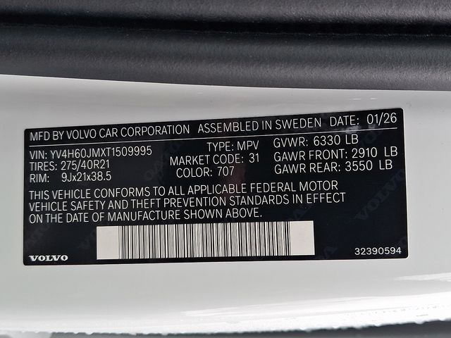 2026 Volvo XC90 plug-in hybrid T8 Ultra Dark Theme 6-Seater eAWD YV4H60JMXT1509995