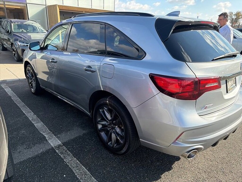 Clean CARFAX. Silver 2019 Acura MDX 3.5L Technology Pkg w/A-Spec Pkg SH-AWD AWD 9-Speed Automatic 3.5L V6 SOHC i-VTEC 24V 4D Sport Utility Leather, 3rd row seats: bench, Adaptive suspension, Exterior Parking Camera Rear, Memory seat, Power Liftgate, Power moonroof, Premium audio system: Acura/ELS Surround.
