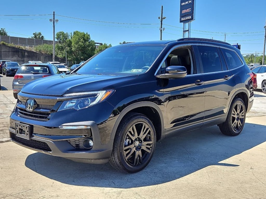 Clean CARFAX. Black 2022 Honda Pilot Special Edition AWD 9-Speed Automatic 3.5L V6 24V SOHC i-VTEC 4D Sport Utility AWD, 3rd row seats: split-bench, A/V remote: CabinControl, AM/FM radio: SiriusXM, Apple CarPlay/Android Auto, Blind Spot Information (BSI) System warning, Exterior Parking Camera Rear, Front Bucket Seats, Heated front seats, Leather Seat Trim, Memory seat, Power driver seat, Power Liftgate, Power moonroof, Wheels: 20" Exclusive Gloss Black Alloy.