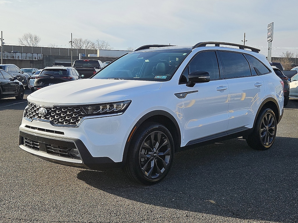 Glacial White Pearl 2021 Kia Sorento EX AWD 8-Speed DCT 2.5L I4 DGI Turbocharged DOHC 16V LEV3-ULEV70 281hp 4D Sport Utility AWD, 3rd row seats: split-bench, Apple CarPlay & Android Auto, EX AWD X-Line Package, Exterior Parking Camera Rear, Panoramic Sunroof Package, Power driver seat, Power Liftgate, Power Sunroof w/Power Sunshade, Wheels: 20" Matte Grey.
