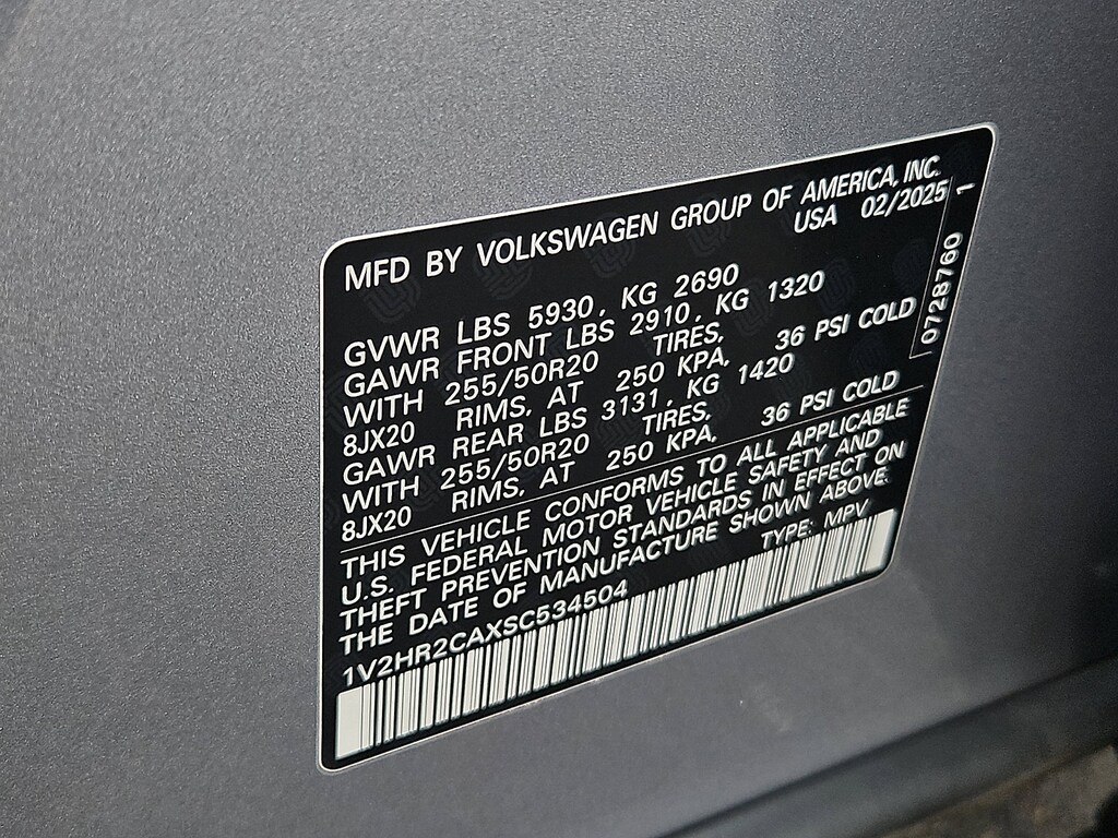 CARFAX One-Owner. Clean CARFAX. Silver Mist Metallic 2025 Volkswagen Atlas 2.0T SE w/Technology AWD 8-Speed Automatic 2.0L TSI 4D Sport Utility 3rd row seats: split-bench, AM/FM radio: SiriusXM with 360L, Exterior Parking Camera Rear, Heated front seats, perforated V-Tex leatherette seating surfaces, Power driver seat, Power Liftgate, Rain sensing wipers.